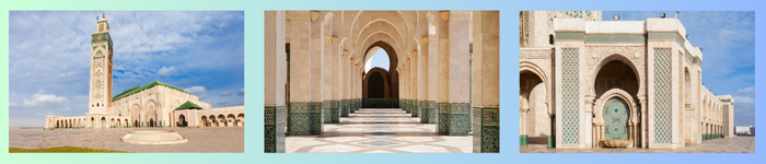 Marrocos é conhecido pela beleza de suas mesquitas e tradições islâmicas. Em Casablanca, está a Mesquita Hassan II, uma das maiores do mundo. Em Marraquexe, madrassas e palácios guardam a espiritualidade muçulmana.